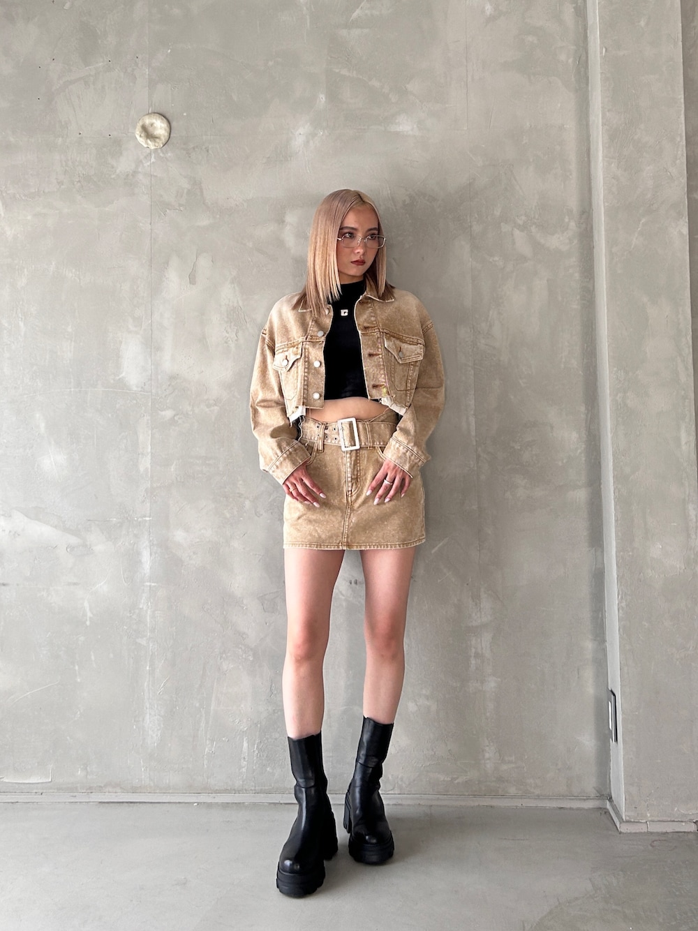 濱田 萌衣(EMODA)(EMODA)のデニムスカート「ワイドベルトデニムスカート」を使ったコーディネート