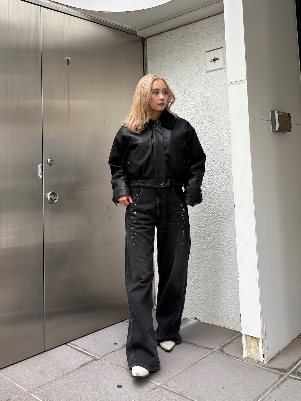 濱田 萌衣(EMODA)(EMODA)のブルゾン「フェイクレザーボアブルゾン」を使ったコーディネート
