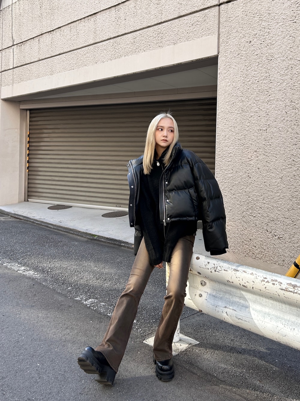 濱田 萌衣(EMODA)(EMODA)のダウンジャケット/コート「フェイクレザーショートダウン」を使ったコーディネート