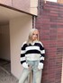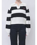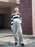 ボーダーをポイントにカジュアルなスタイリングで合わせました♡ ワイドデニムと組み合わせ、ゆったりルーズな印象です♪♪ 春先も着用しやすい、スキッパーシルエットのデザインニットになってます₍ᐢ⑅•ᴗ•⑅ᐢ₎