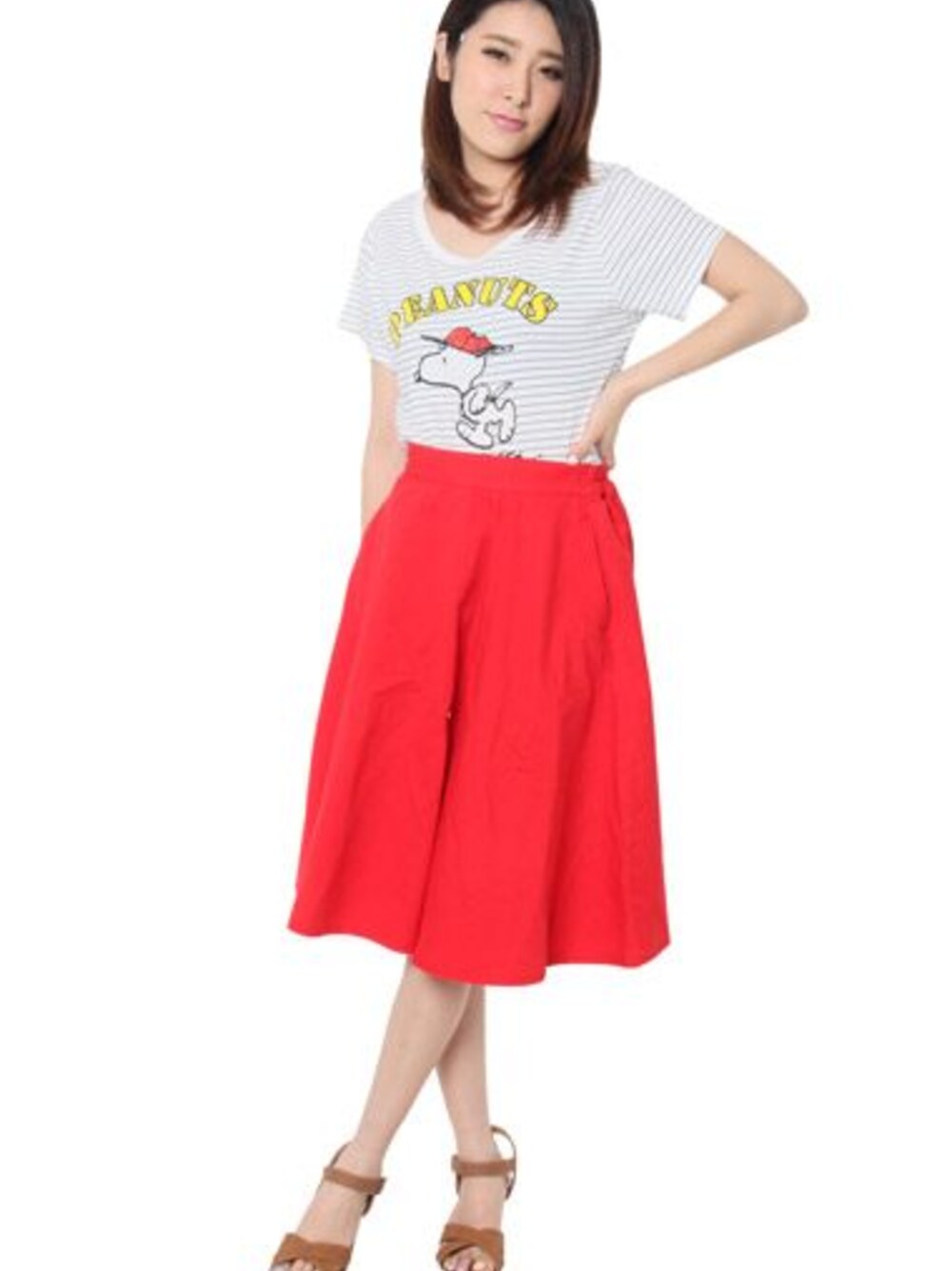 ※全品対象セール開催中※ 【m.m.m online(ムムムオンライン)で今すぐ買えます】 スヌーピーをプリントした青×白ボーダーTシャツに、赤のヒザ丈フレアスカートを合わせました。 足元には大人っぽい色のクロスサンダルを合わせています。 RETRO GIRL スヌーピーCAPプリントTee(20%OFF。1987円) http://mmm-online.jp/products/detail.php?product_id=1959 RETRO GIRL ミディ丈フレアスカート(20%OFF。3369円) http://mmm-online.jp/products/detail.php?product_id=1963 RETRO GIRL クロスサンダル(30%OFF。2948円) http://mmm-online.jp/products/detail.php?product_id=1949