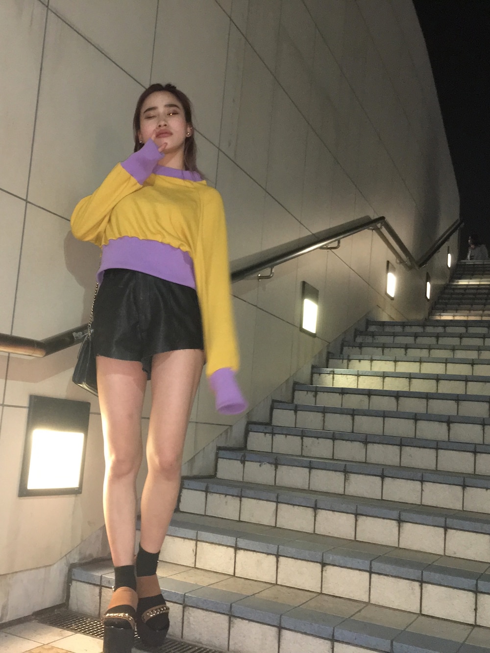 jouetieのこのスウェットはほんまに 一目惚れで買った💜💛💜💛 ランウェイチャンネル限定で 8,000円くらいです💄 可愛くなりすぎひんよーに レザーのショーパンで🔥🔥🔥🔥 オシャレってたのしい