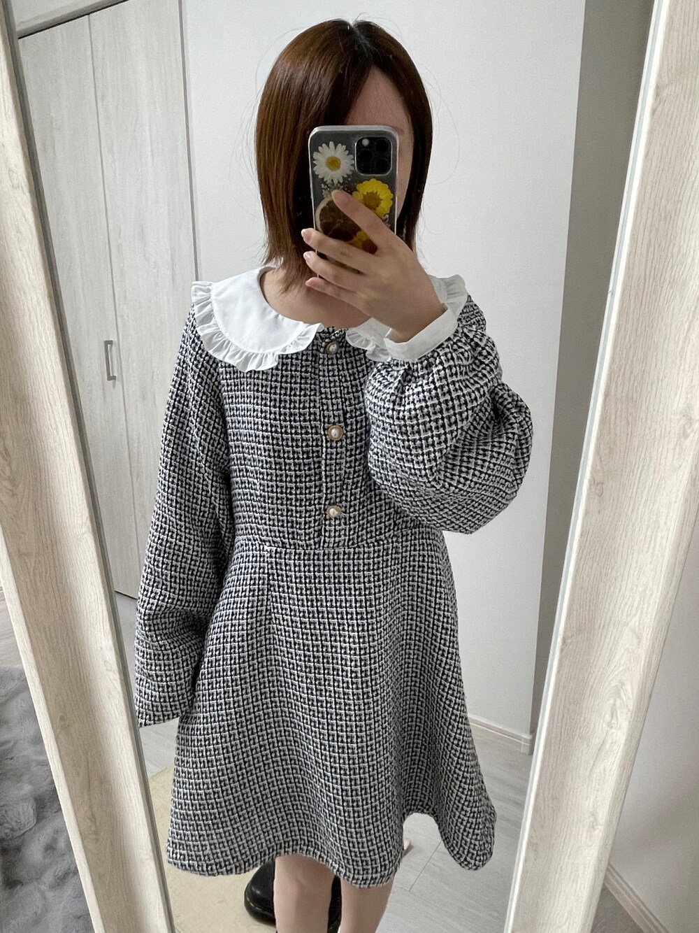 mmmrapaのワンピース「フリル襟ツイードワンピース【ZOZOTOWN限定アイテム】」を使ったコーディネート