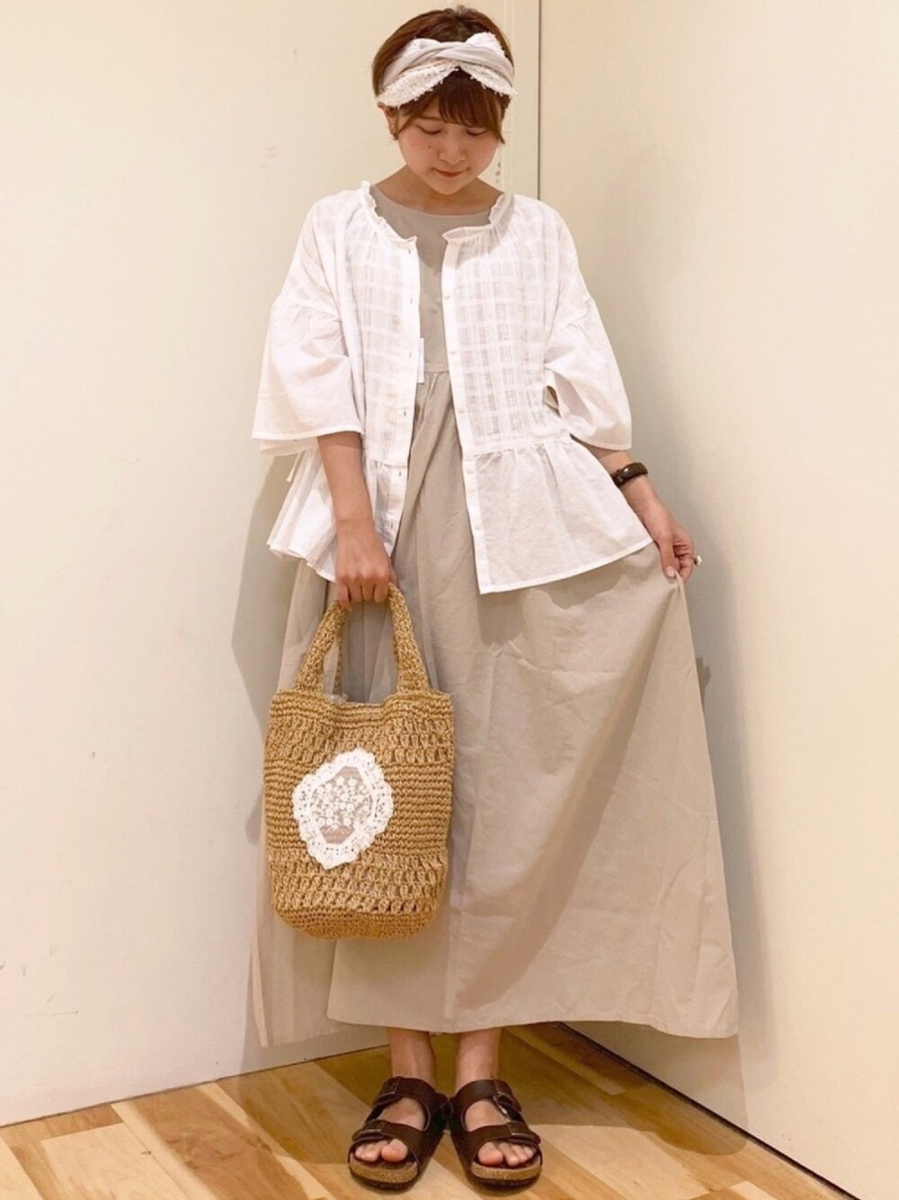 前の投稿の 2枚セットワンピース を着回し 𓋪 ノースリーブのワンピースに 透け感の可愛い ブラウスを羽織りました 𓂃 このブラウスはなんと 前後着 !⸝⸝ さらに羽織にも出来て いろんな着方が出来ますね 𓃺𓇢 𓐍 blouse : 前後着切替ブラウス 𓐍 dress : レース2枚セットワンピース 𓐍 shoes : 2本ベルトサンダル 𓐍 bag : パーツレース付ペーパートート 𓐍 accessory : 私物