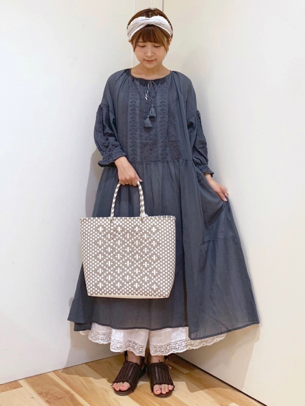 ワンピース 入荷しました ◌ 刺繍と 胸元のタッセル、袖のぽわん感も とっても かわいいです ⸝⸝ そのまま着るのも良いですが 下にレースのパンツを 合わせるのもおすすめです 𓅯 ⸒⸒ 𓐍 inner : 胸元レースカットソー 𓐍 dress : 刺繍ワンピース 𓐍 pants : レースパンツ 𓐍 shoes : メッシュサンダル 𓐍 bag : メルカドバッグ