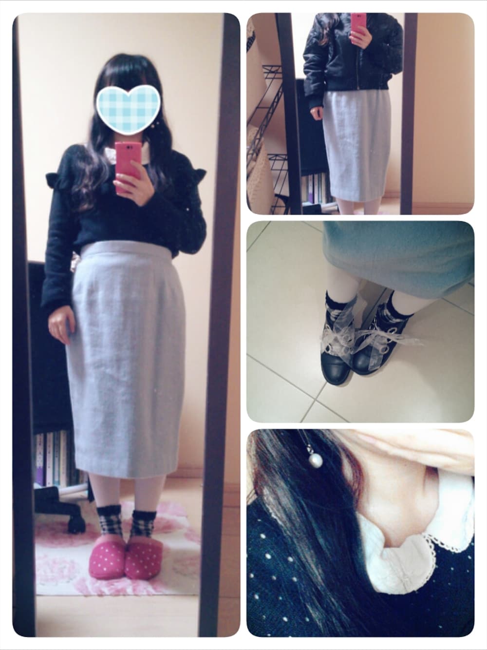 古着屋さんで見つけたスカートはレトロな丈と色合いにひとめぼれ♡