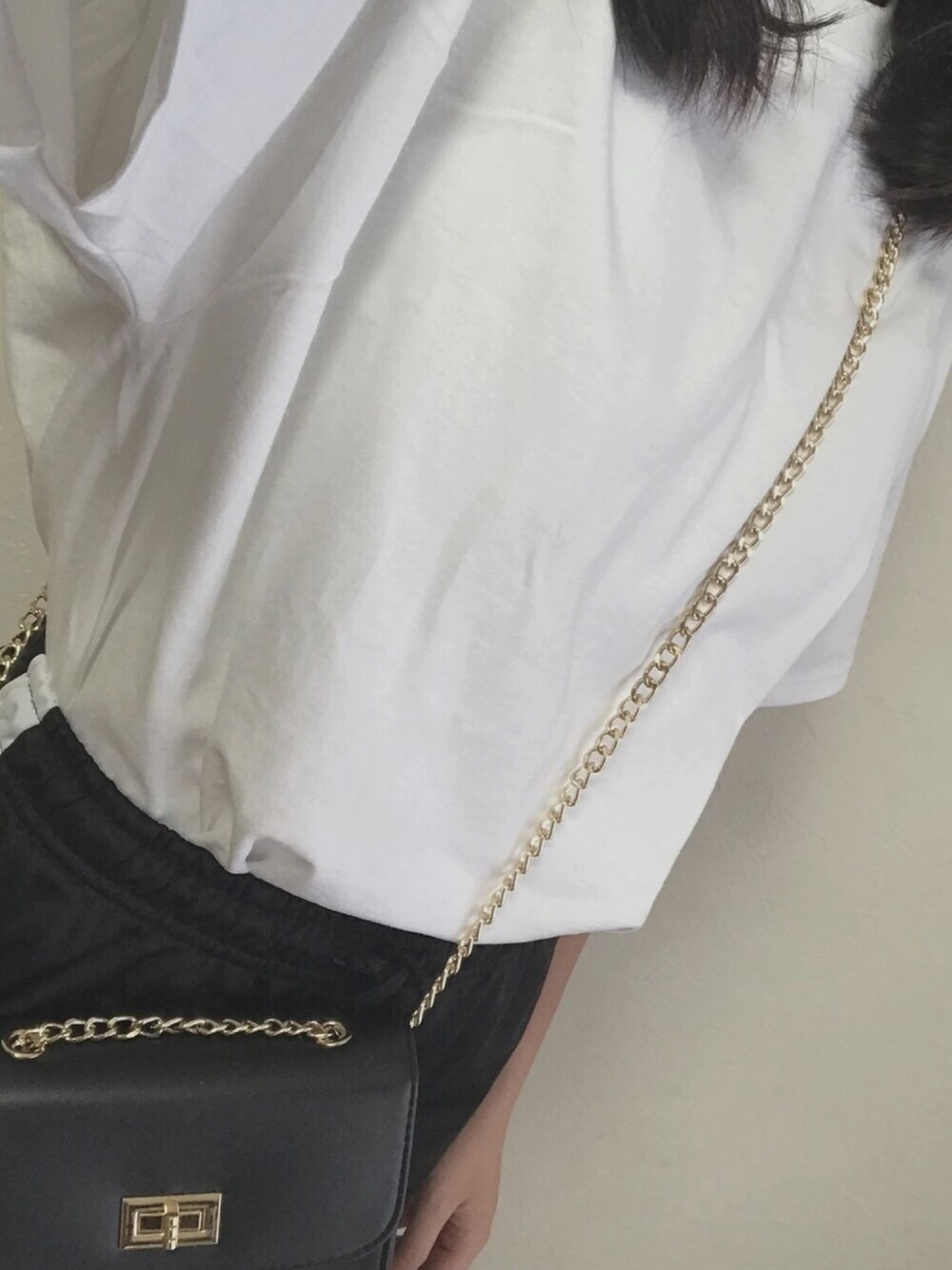 このカバン折りたたみ財布しか入らないけどカワイイ ! 白Tは安定 〜 動きやすいからはなまる