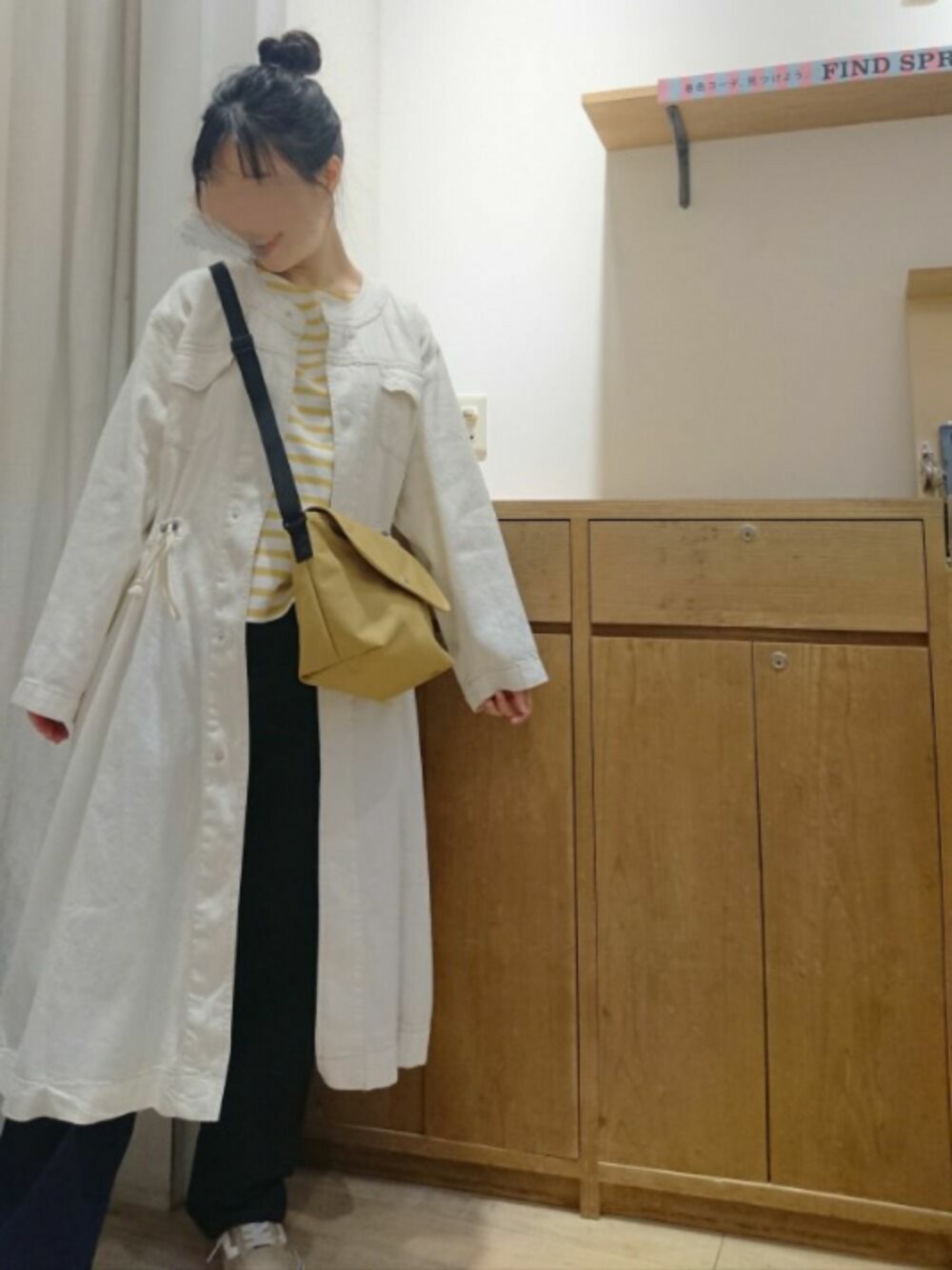 【デニム×イエロー】カジュアルコーデ🌟 先日の白デニムコートの着回しです!! デニムと春イエローのバランスが◎ 挑戦しにくいカラーものも 「ボーダー」だと一気に使いやすくなります✨ 色違いのパープルやグレーも春らしくてオススメです!