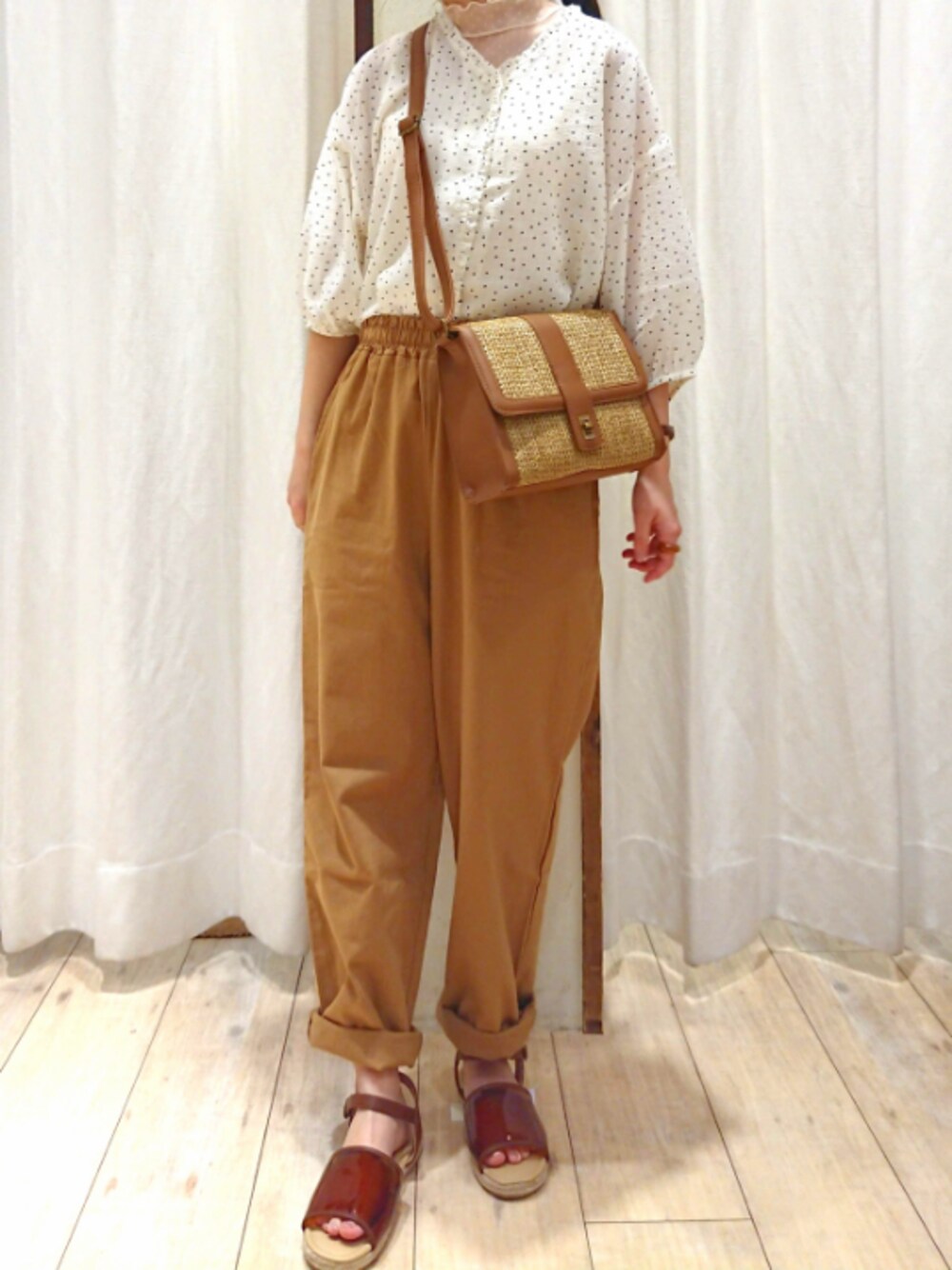 夏のブラウンコーデ🌻 ehka sopoとSamansa Mos2 blueのミックスコーデです!! -blouse- 少し長めの5分丈で日焼け対策に✅ 生地感も涼しく着回しも抜群✨ -pants- ゴムで楽チンなリラックスパンツ◎ シルエットもキレイで、気になる太もももカバーしてくれます🥺✨ -sandals- 今年トレンドのクリアサンダル👡 ヒールもなく、クッションが柔らかくて履きやすい!