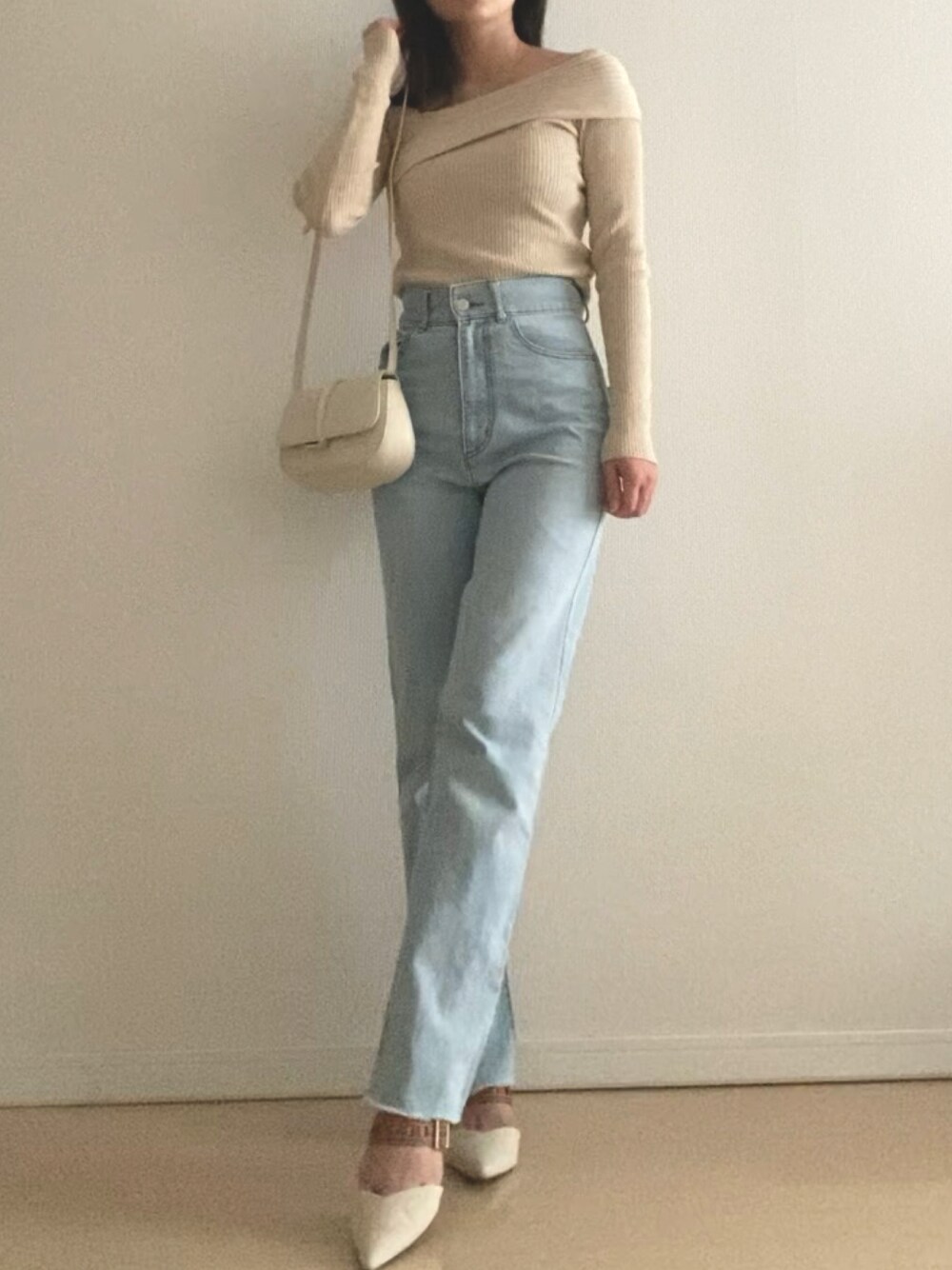 micoのデニムパンツ「【新色追加】バックレースアップストレートデニム」を使ったコーディネート