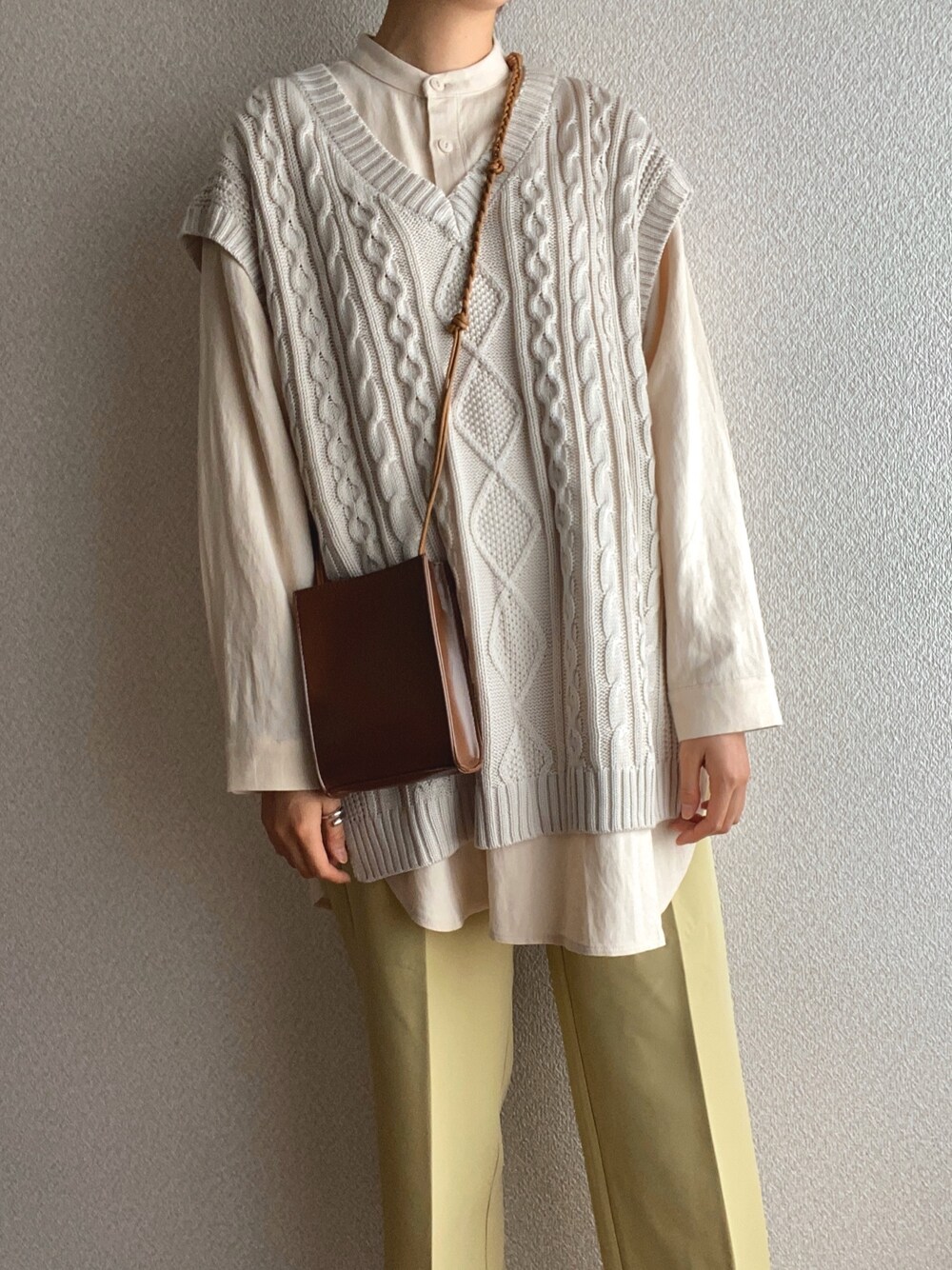 misatoのベスト「ケーブルニットベスト」を使ったコーディネート