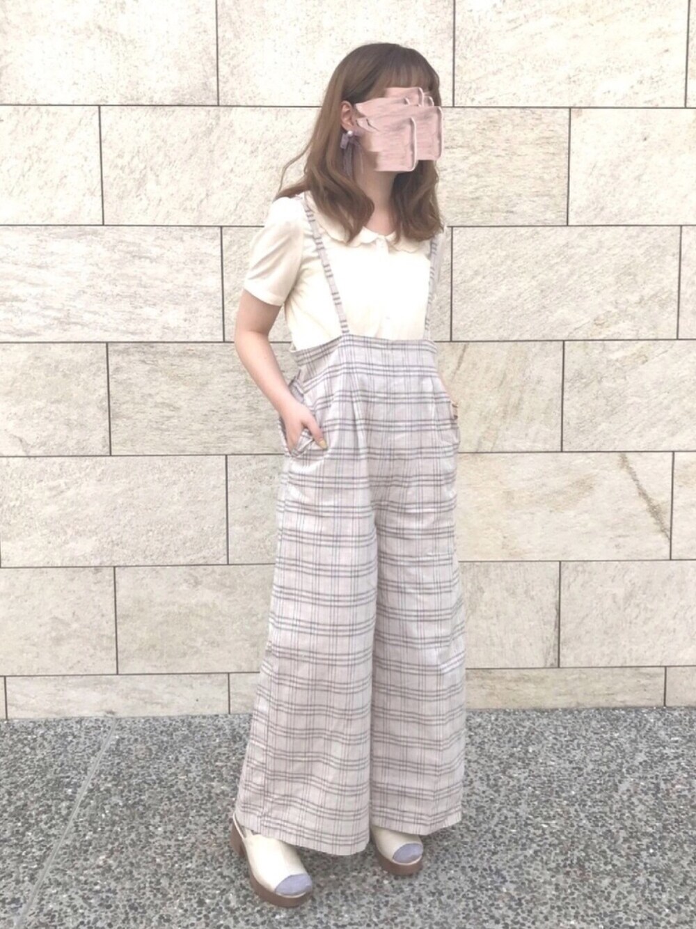 •ᴥ• m i mのその他パンツ「リネン混チェック柄サス付きパンツ」を使ったコーディネート