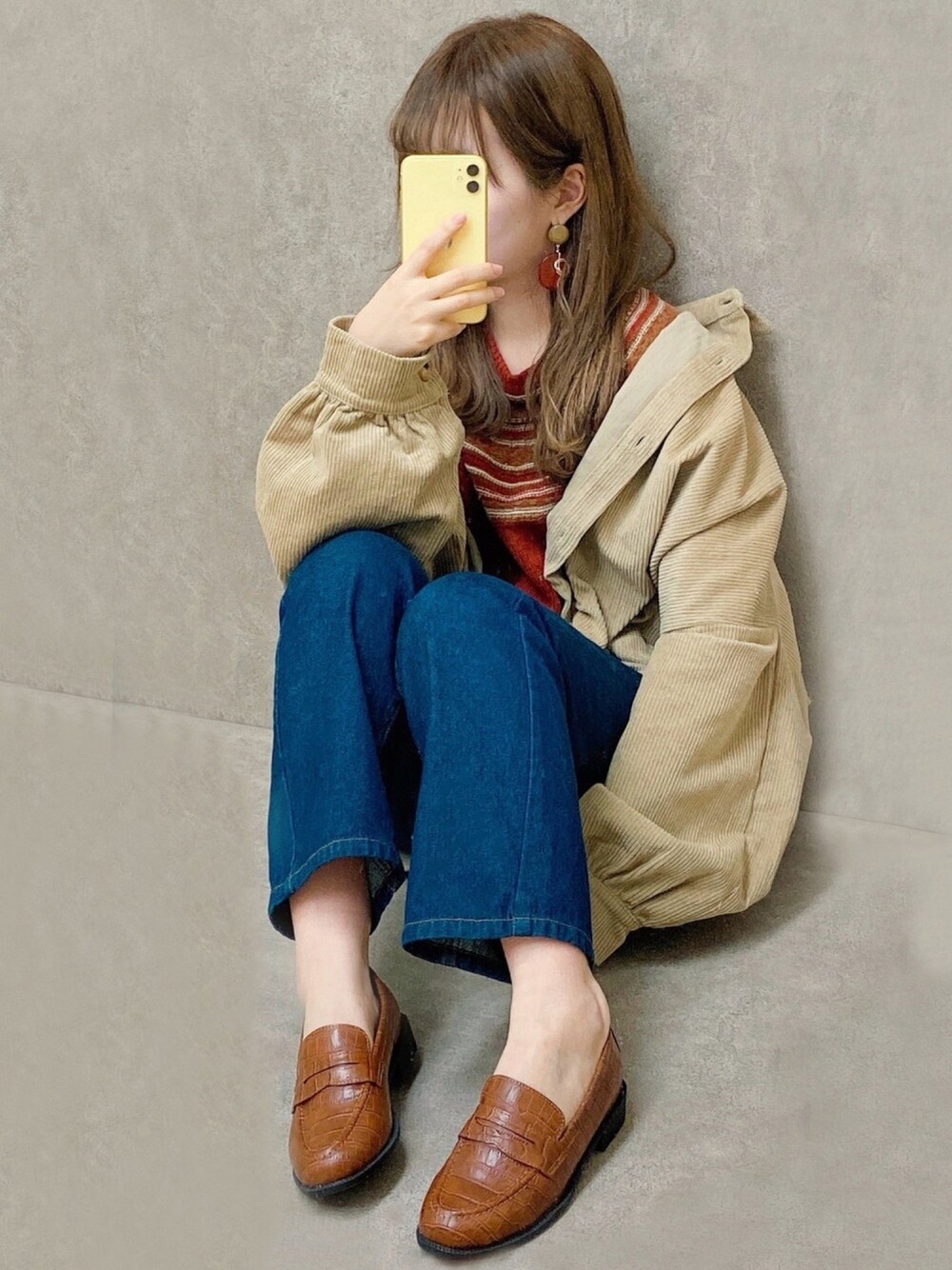 ˗ˋˏご覧いただき、ありがとうございますˎˊ˗ ベージュのビッグサイズシャツ、 オーバーサイズなので 中にニットも着込めます ☃︎*.° オレンジニットにデニム、 ブラウンのローファーを合わせました 🧶˒˒ -------------------------------- よかったら ♡ いいね 、セーブ いただけるとうれしいです・‿・
