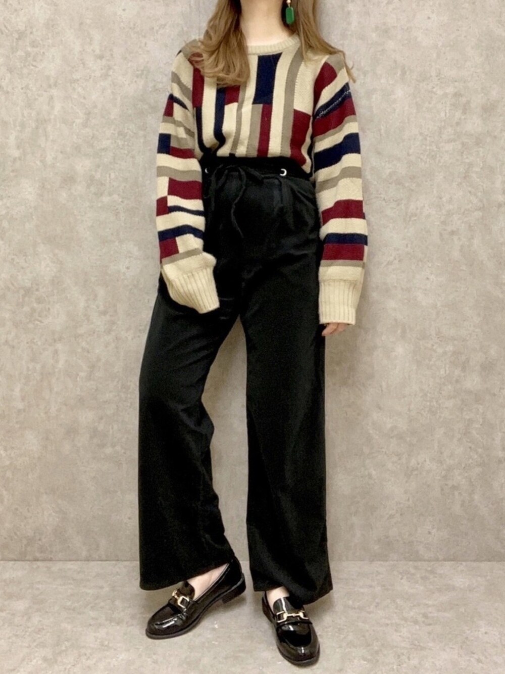 ˗ˋˏご覧いただき、ありがとうございますˎˊ˗ 古着っぽいニットにフェイクコールのパンツと 温かみのある雰囲気でそろえて、ゆるっとしすぎないように 足元はビットローファーで全体をしめました •̀.̫•́✧ -------------------------------- ♡ いいね 、セーブ 、 フォロー いただけるとうれしいです・‿・