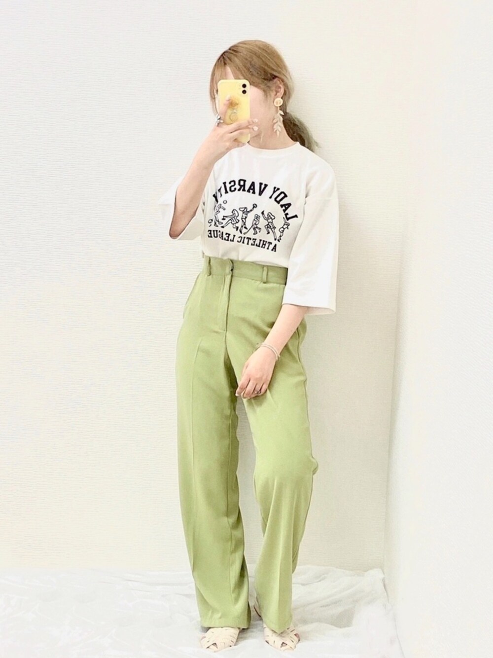˗ˋˏご覧いただき、ありがとうございますˎˊ˗ お気に入りのスポーティーな白Tに sangoのストレートパンツ、グリーンを合わせました🎾 ホワイトとグリーンのみのシンプルコーデです𖥧 𖧧 ˒˒ -------------------------------- ♡ いいね 、セーブ 、 フォロー いただけるとうれしいです・‿・