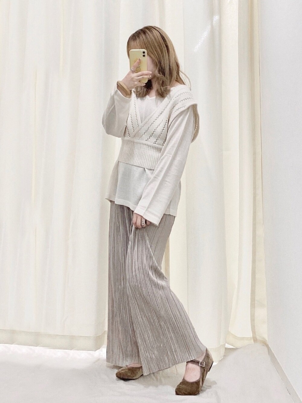 •ᴥ• m i mのニット/セーター「透かし編みベスト&ニットプルオーバー」を使ったコーディネート