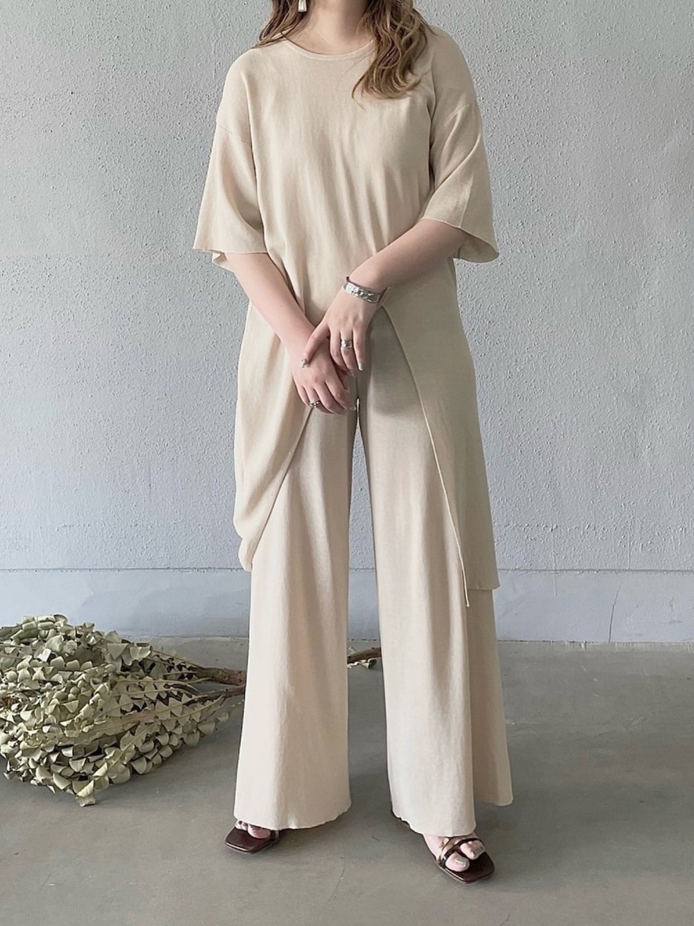 •ᴥ• m i mのセットアップ「オーバースリットサマーニットセットアップ」を使ったコーディネート