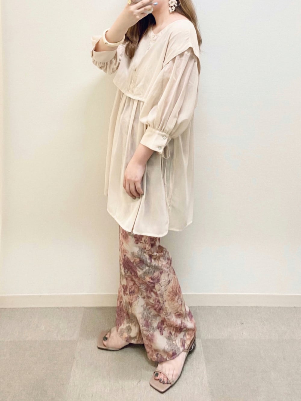•ᴥ• m i mのシャツ/ブラウス「2wayドロストレイヤードチュニック/透けブラウス」を使ったコーディネート