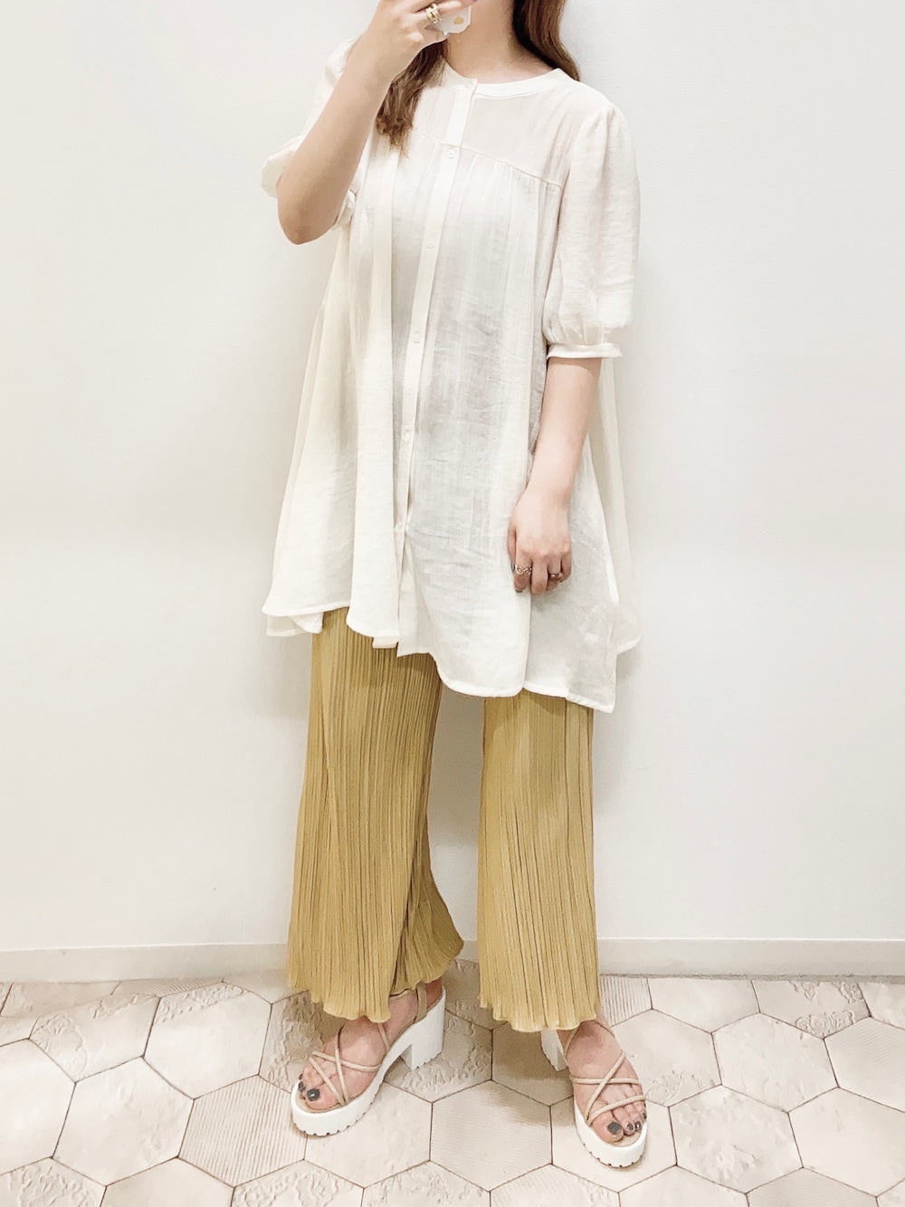 ˗ˋˏご覧いただき、ありがとうございますˎˊ˗ 黄色のプリーツパンツと合わせた楽ちんなゆるコーデ §:›) 白×黄×ベージュでふんわり柔らかい色合いに🌼 ベージュと白いソールの配色の感じも可愛くて 華奢ストラップ⇄厚底なのも◎です·͜·♡ -------------------------------- ♡ いいね 、セーブ 、 フォロー いただけるとうれしいです・‿・