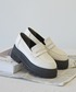 ˗ˋˏ ご覧いただき、ありがとうございます ˎˊ˗ カジュアルなフリンジ×ケーブルニットに、 ブルーのパンツを合わせたゆるコーデ🥣 厚底のコインローファー、ホワイトは カラーパンツとも相性◎◎◎です❕ -------------------------------- ♡ いいね 、セーブ 、 フォロー いただけると うれしいです ꗯ̤̮