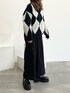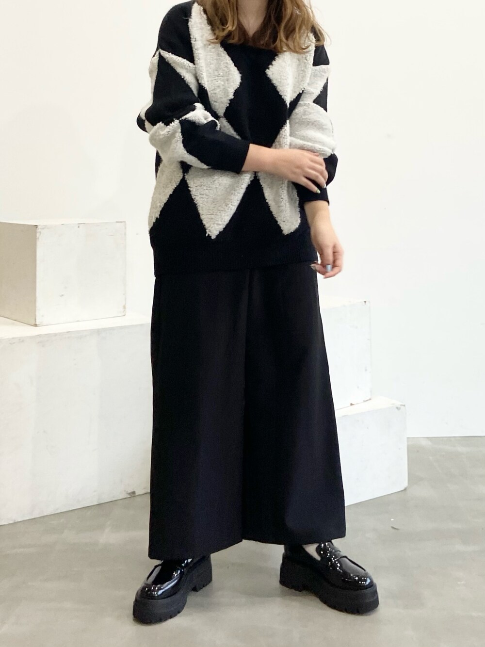 ˗ˋˏ ご覧いただき、ありがとうございます ˎˊ˗ ダイヤ柄のオーバーサイズニットで モノトーンコーデ 🐼 ⸜❤︎⸝ ローファーは厚底だけど 無理なく盛れて履きやすいです✨ -------------------------------- ♡ いいね 、セーブ 、 フォロー いただけると うれしいです ꗯ̤̮