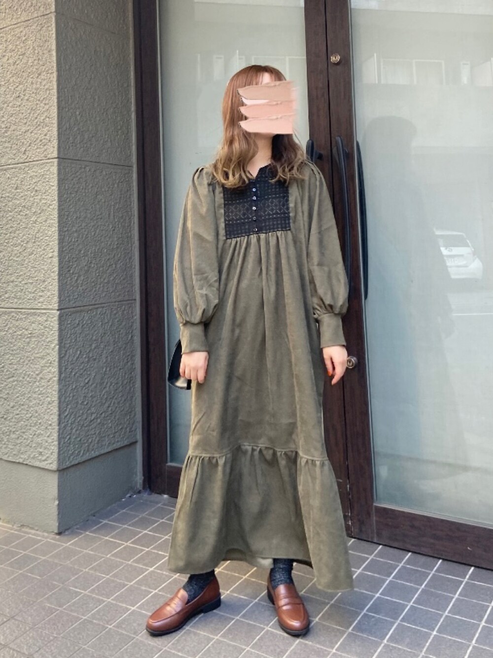 ˗ˋˏ ご覧いただき、ありがとうございます ˎˊ˗ カーキ地に黒刺繍のレースが渋くて可愛い🤤 ふんわりだけど落ち感のある シルエットもお気に入りです ❤︎ ローファーと合わせてとことん クラシカルな雰囲気にしました 🧺 -------------------------------- ♡ いいね 、セーブ 、 フォロー いただけると うれしいです ꗯ̤̮