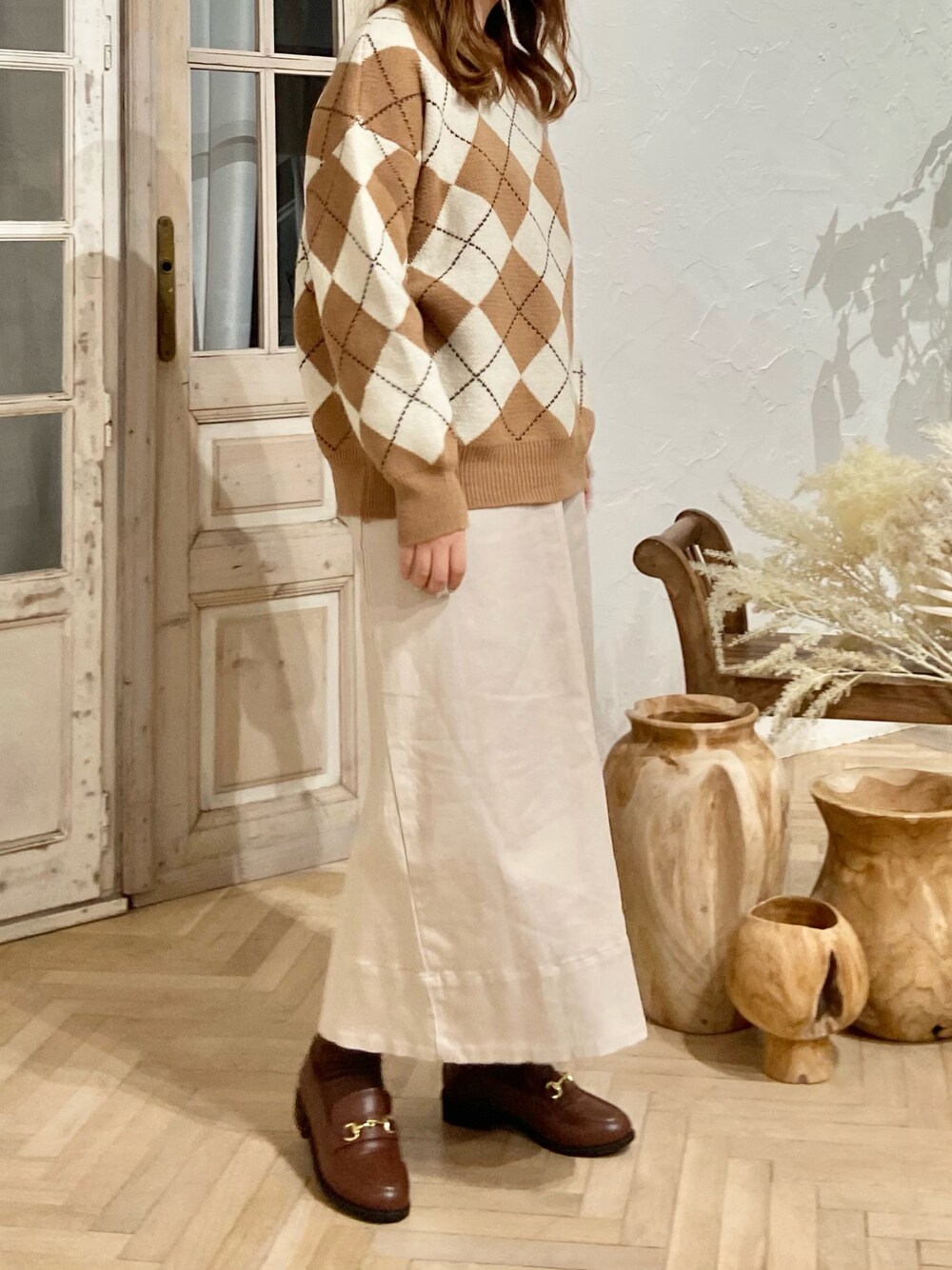 ˗ˋˏ ご覧いただき、ありがとうございます ˎˊ˗ アーガイル柄のニット×ローファーで トラッドなコーデにしました📚 ゆるっとした雰囲気のアイテムにも 履くだけできちんと感があるコーデになる ローファーはあると使えます𓐣 ᐝ -------------------------------- ♡ いいね 、セーブ 、 フォロー いただけると うれしいです ꗯ̤̮