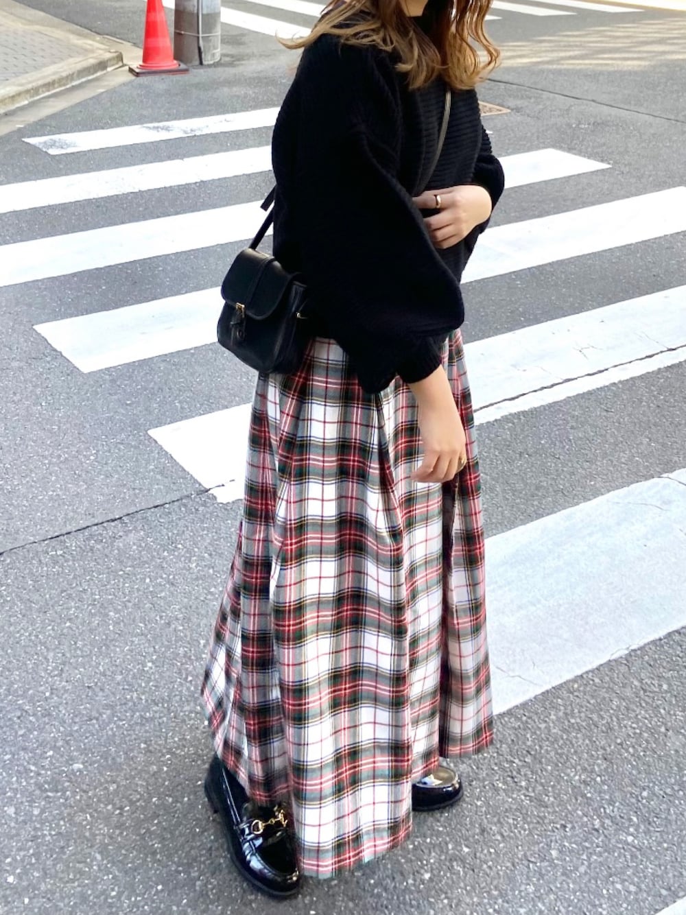 ˗ˋˏ ご覧いただき、ありがとうございます ˎˊ˗ 肌寒かった日のコーデ⿻ 大好きなチェックスカートをメインに 他はブラックで締めました🐾 靴は合わせやすいエナメルローファー。 ゆる×かっちりなコーデ好きなので このバランスがとても着心地いいです🥨 アクセはローファーのビット、 バッグの金具と同じゴールドにしました 𓐣 ᐝ -------------------------------- ♡ いいね 、セーブ 、 フォロー いただけると うれしいです ꗯ̤̮