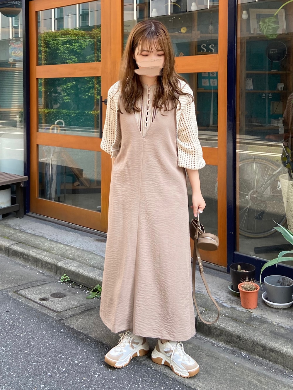 久しぶりにシンプル淡色なゆるコーデ𓂃 𓈒𓏸 メッシュボレロは 寒暖差のあるこの時期にも使いやすくて、 ベルトデザインがひと癖あって可愛いです♡ アクセントにベージュ×ブラウン系の ストライプタンクをレイヤードしました🪴 ベージュのワントーンで まとまりのあるコーデに📚💭
