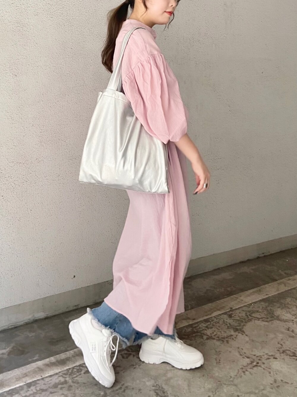 ˗ˋˏ ご覧いただき、ありがとうございます ˎˊ˗ ピンク×デニムのコーデには 白スニーカーがやっぱりはまります🍬 アクセ、バッグをシルバーに統一しました⛓ -------------------------------- ♡ いいね 、セーブ 、 フォロー いただけると うれしいです ꗯ̤̮