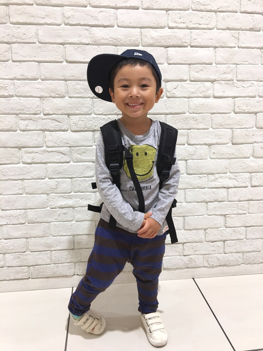 リュックをポイントに取り入れて ボーダーのサルエルパンツと合わせてラフなスタイルにコーディネートしてみました(๑・̑◡・̑๑) このスマイルのロンT合わせやすくてなかなかのお気に入りです♡