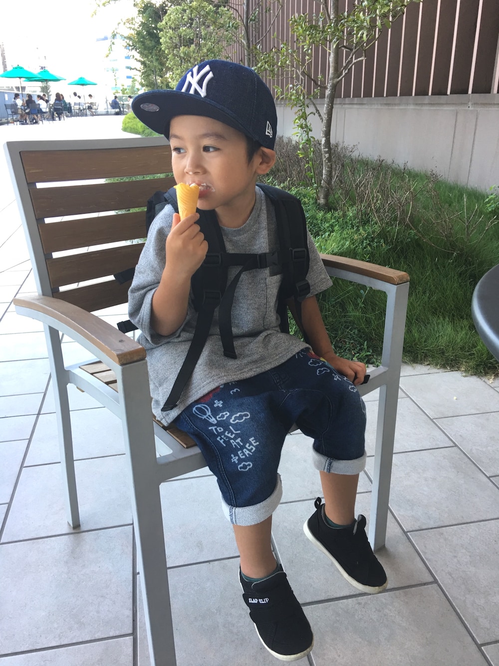 どうやら息子ちゃん、大好きなアイスクリームをお鼻に食べさせたようです(*´◒`*)笑