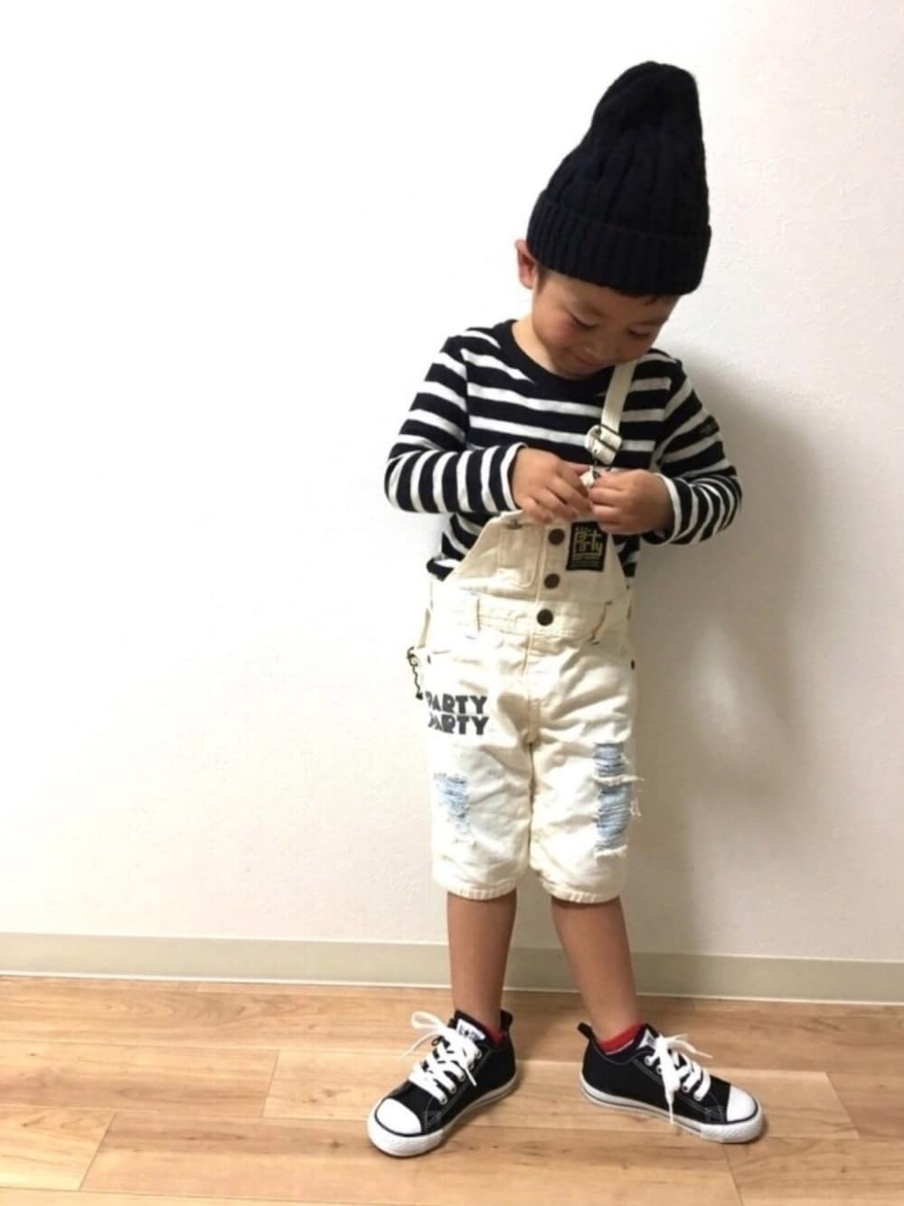 #秋サロペ2017きのこ派 きのこたけのこどっちのこ?🍄 ギリギリになってしまいましたが、主催者様参加せて下さい😆 持ち合わせのサロペットがなくて 普段は110cm着用の息子に2年前に着ていたpartypartyの95㎝のサロペットを引っ張り出して紐を一番長くして着せてみました〜❣️ やっぱり丈が短い…(笑) パツンパツンでちょっと無理がありますが…我が家はきのこ派で投稿させて頂きます🍄✨