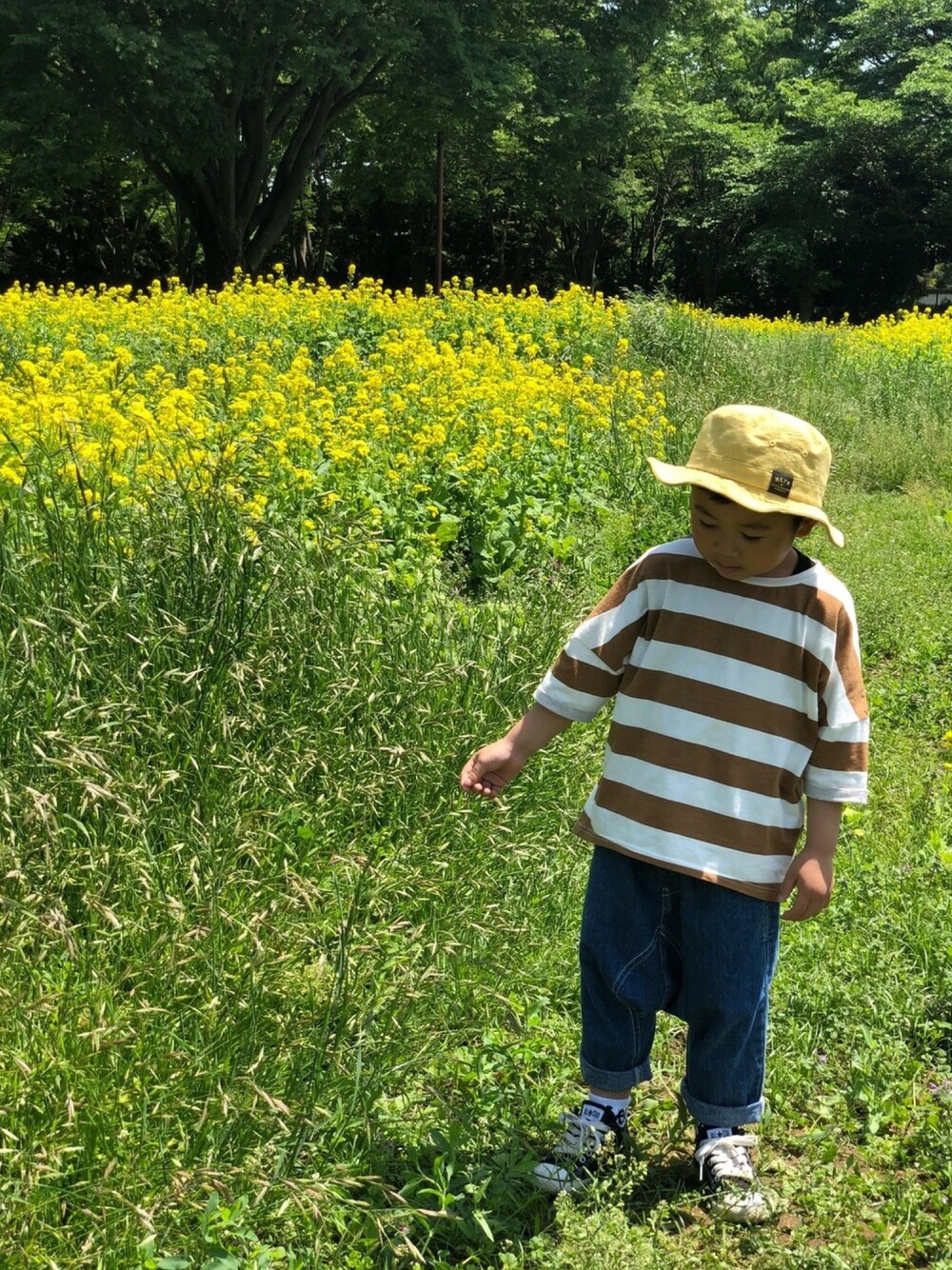 G W2日目またまた昭和記念公園へ⚽️ この前行った時はお花見で沢山の人が 賑わっていましたが 日曜日は昭和の日で入場料無料🙌 だったのでとにかく凄い人でした‼️ でも空は青く緑も綺麗で のんびり満喫🎶✨😆 贅沢なお休みでした❤️ コーデはdevirockさんのワイルドボーダー 私がフォローさせてもらっている 可愛い可愛いカンタくんが コーデしているのを見て 欠品状態から半月前に予約して やっと届きました🤣 キャメルのサイズ120 グルカラ130だったからか ちょい小さいような気もするけど 形もカラーも可愛いし待った甲斐がありました😉✨