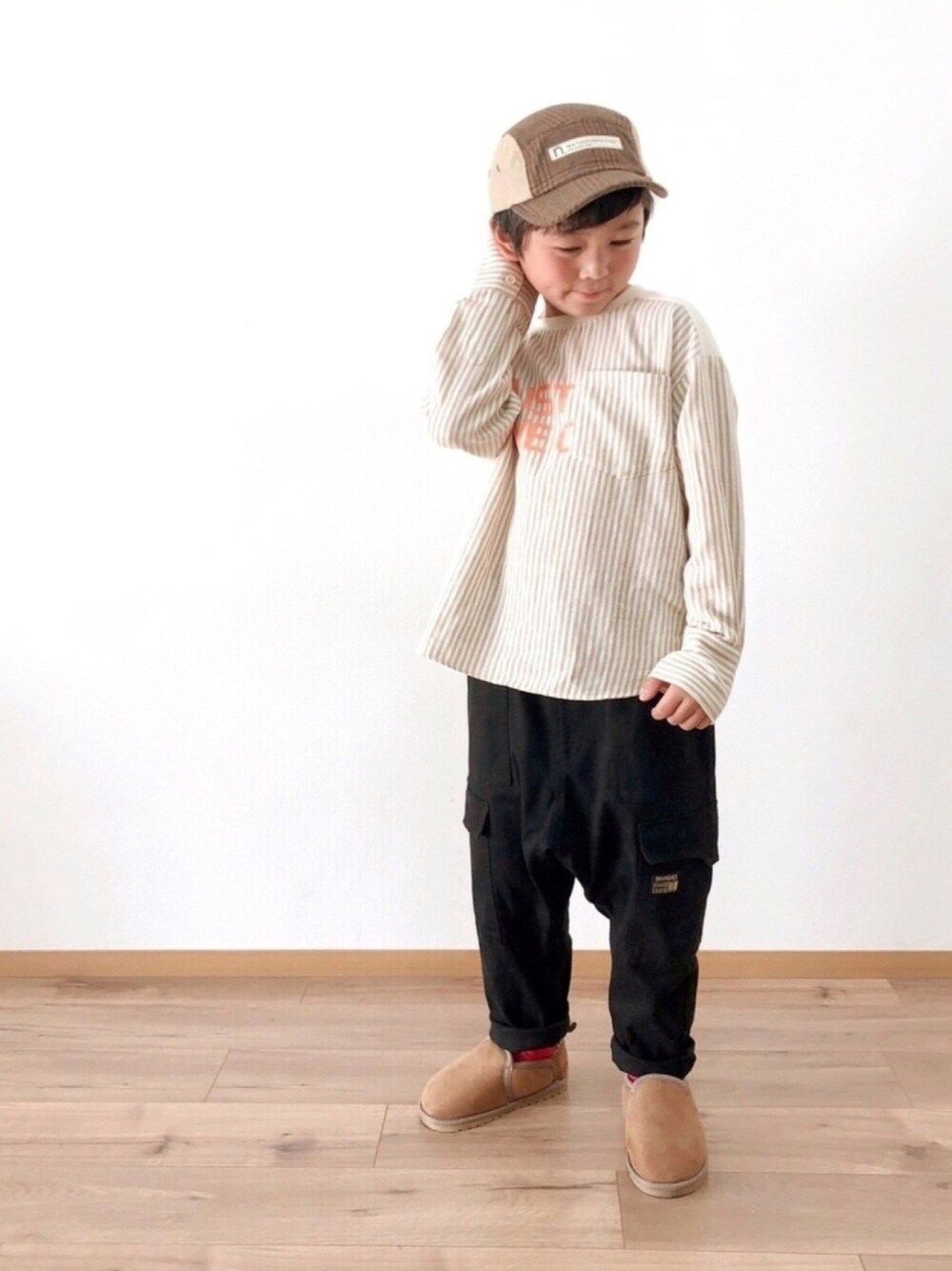 #Branshes ♩ JKバージョンも撮ったけどせっかくの可愛いシャツが見えないのでこの一枚を😆 また忘れた頃にもう一枚の方をpostさせて下さい🤣 ストライプの切り替えシャツ、カタログ見た時からの一目惚れでこの前セールになった時にやっとget‼︎ カーゴパンツはちょっと丈短めで履く作りなのかもですがダボッと履かせたかったのでワンサイズ上にしました👖 サルエル好きにはたまらん🤤 breezeさんのブーツはもともと19cmまでのサイズ展開で可愛いのに履けないだろうなと諦めていたら意外と大きい作りなのかかろうじて入りましたー😆❤️ 靴も出来たらジュニアサイズを作って頂きたいです🙇♀️ 7y7m ⋆ ⋆❤︎ Height ⋆⋆123cm❤︎ イイネ→お気に入り、+📂入り ありがとうございます♡♡ どちらもとっても嬉しいです٩(๑❛ᴗ❛๑)۶