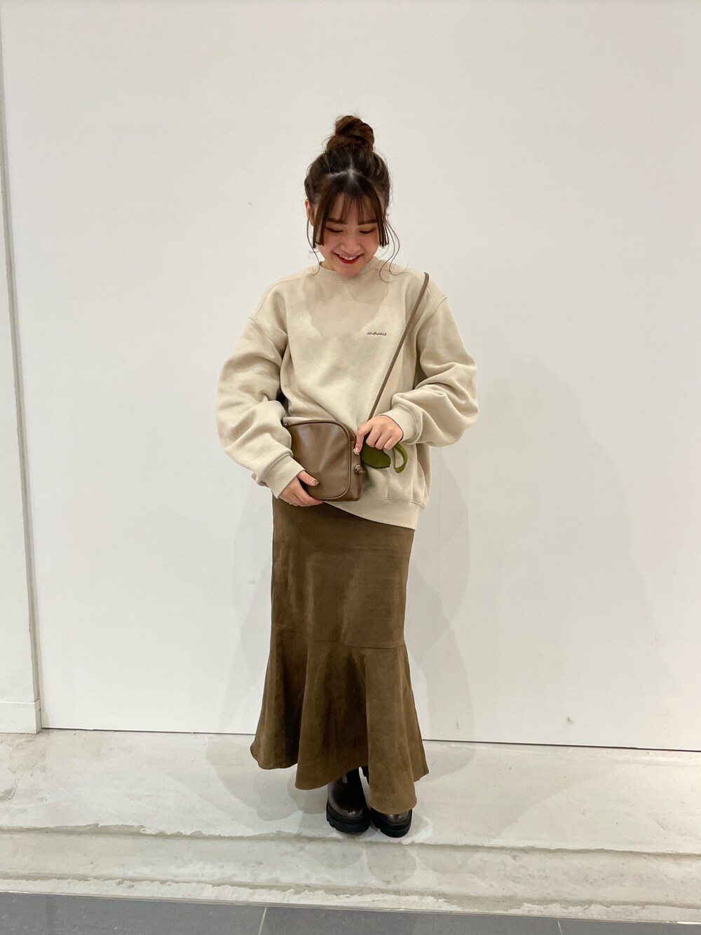 ベージュとブラウンの組み合わせが可愛すぎるからお気に入り...♡❤︎ 髪の毛はアップにしてスッキリさせてみましたꔛ·͜·