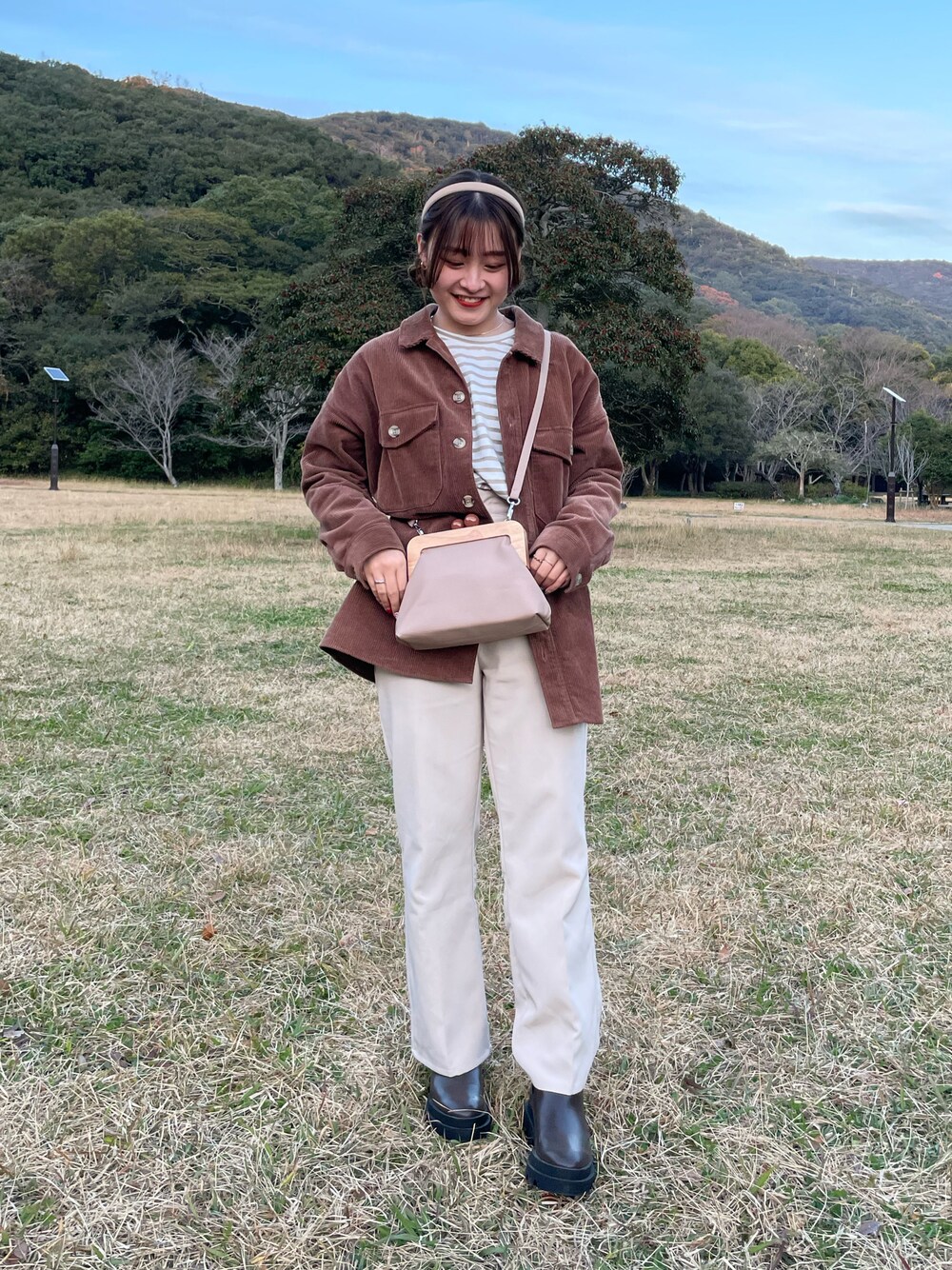 ボーダーのトップスどこで購入したか忘れてしまったけどこのコーデも可愛い(.. )♡