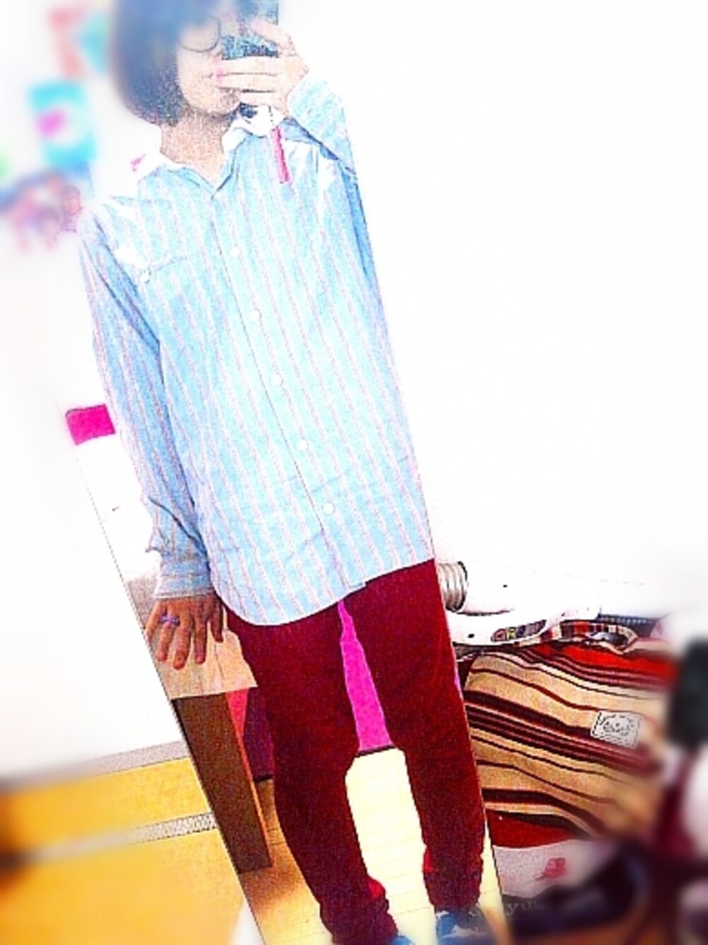 水色Yシャツをシンプルに◎ おきにいりのストライプのYシャツ***