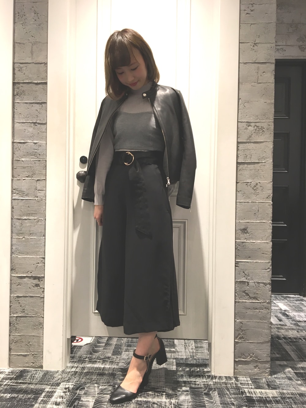 momoのライダースジャケット「レザーシングルライダース(HARE)」を使ったコーディネート