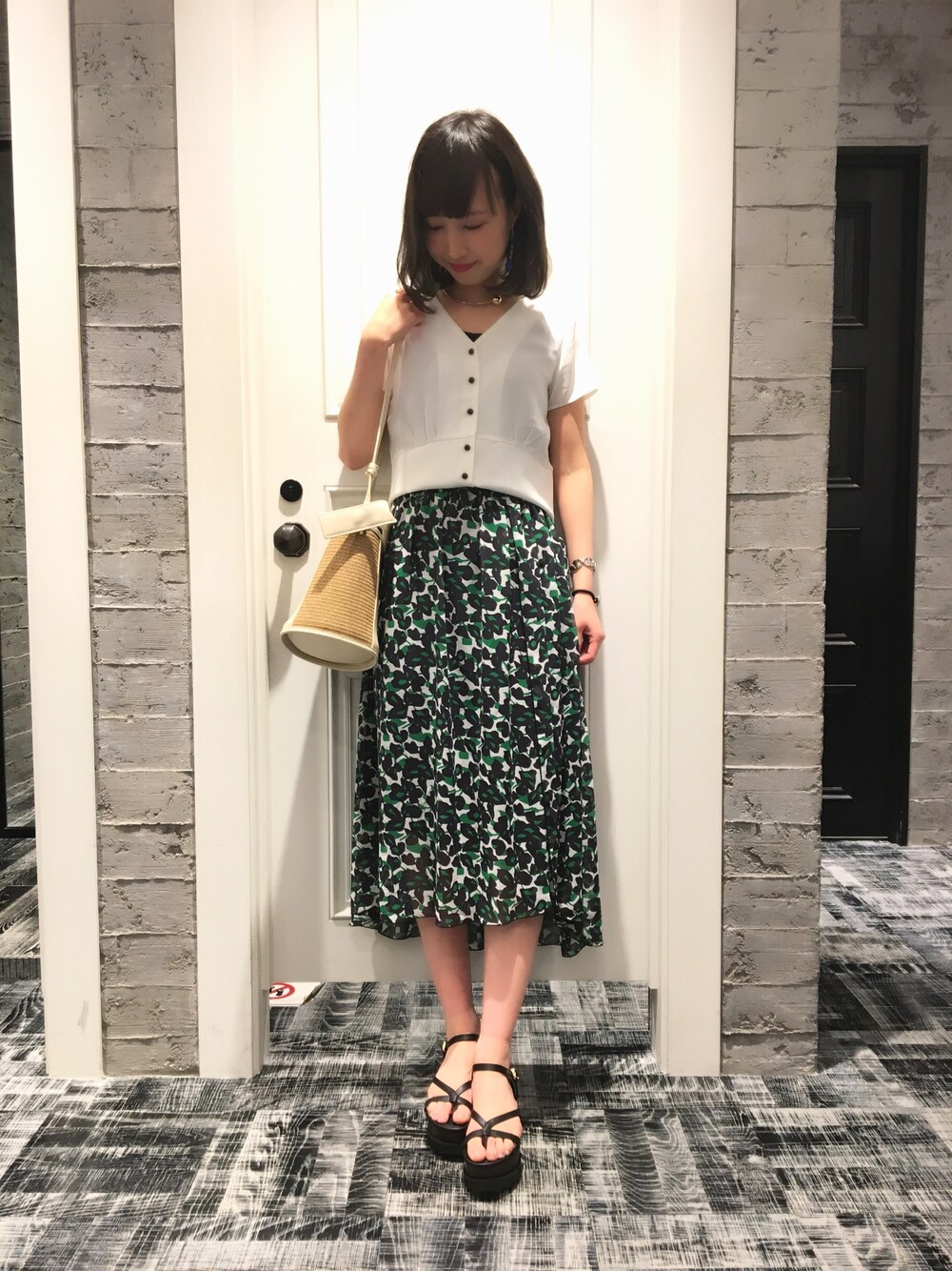 無地柄ヘムスカートを使ったスタイリングです! 柄スカートにコンパクトなVネックシャツを 合わせリラックススタイルにしています✨ スカートの柄は主張がありながらとても品が あり、全体的に高級感を演出してくれます。 ヘム部分のカットが特徴的で、トップスは カジュアルなTシャツ合わせでも バッチリ決まります☆😊