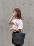 ロゴTシャツ可愛い🖤 まっ黒のカゴバックがポイント🖤
