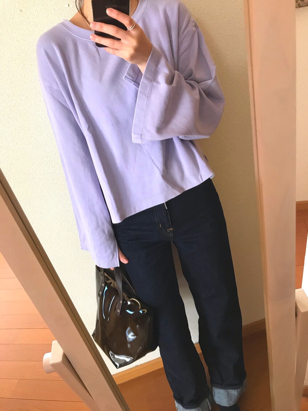 最近お気に入りのEDWINストレートワイドパンツ👖💕 形がいいし、太めにロールアップすると可愛い💕
