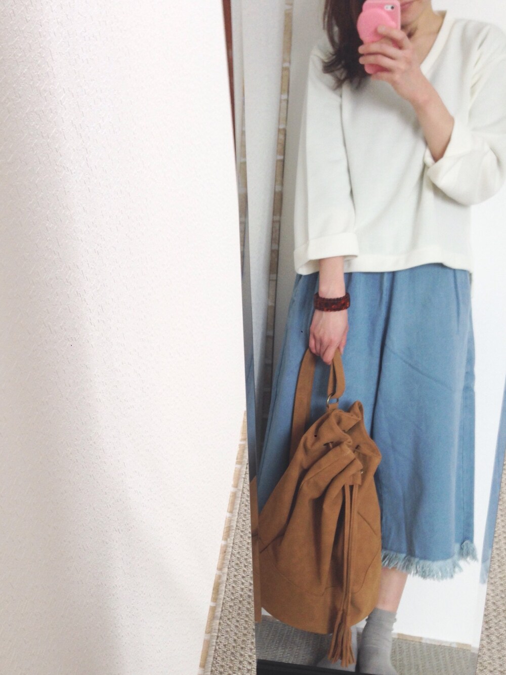 こんにちは😊 ご覧いただきありがとうございます🎵 今日はリラックススタイルです⭐️ ようやく暖かくなってきました♪( ´▽`) 上下ともZOZOのタイムセールでゲットしたものです❤️ フリンジガウチョなんてビックリするくらい安かった😭 ありがたすぎます❤️ これから沢山履かなきゃ〜🎵 このコーデにはレースアップパンプスが欲しかったʕ •́؈•̀ ₎ 安くて可愛いの探し中です。笑 いいね、セーブ、コメント、フォローなど大歓迎です✨