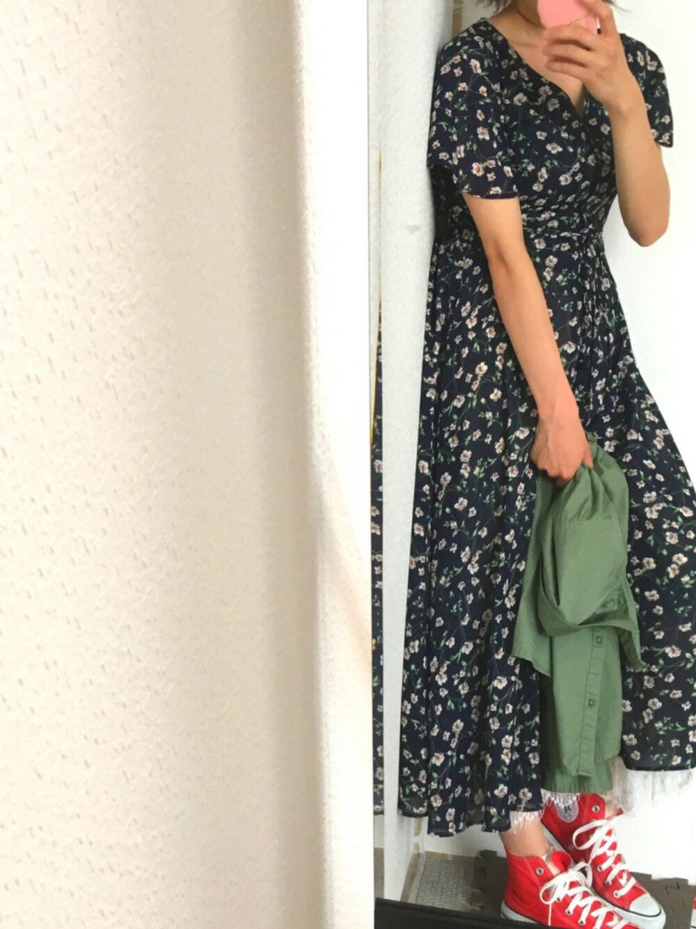 こんばんは(*^^*) ご覧いただきありがとうございます♪ 今日は、フーズフーチコの花柄ロングワンピースを主役にしたコーディネートです✨ 花柄ですがネイビーなので、子供っぽくならずとてもお気に入りです❤️ インナーワンピースも付いているのですが、今回は中にレーススカートを履いてみました♪ レースが裾からチラっと見えると可愛いですよ😁✨ ワンピースはボタンを開ければガウンとしても着られるので、今度はガウンとして合わせたコーデも投稿したいと思っています⑅◡̈* いいね、セーブ、フォロー、コメントなどとても嬉しいです😆❤️ ありがとうございます✨
