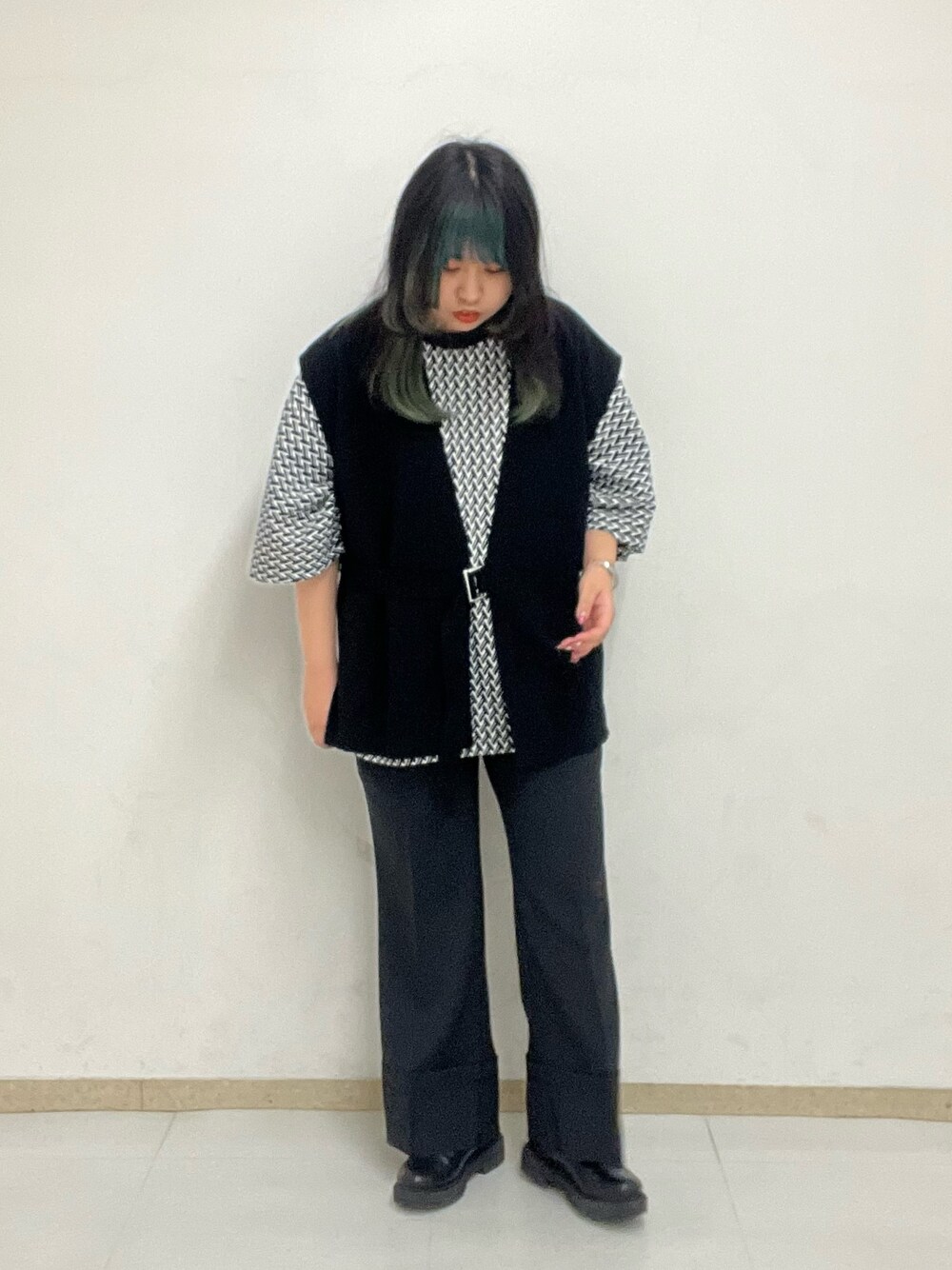 タイロッケンベルトが特徴的なニットベストです! 薄手のニット素材なのでこれからの時期にさらっと合わせやすいアイテムです。 今回は、モノトーンでモード感のあるスタイルでまとめてみました!!