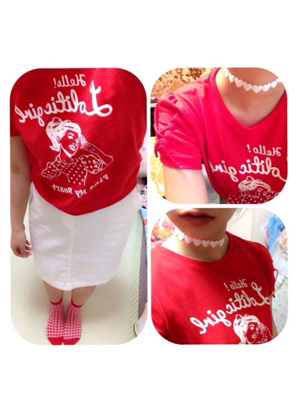 トップス / merry jenny スカート / ciaopanic くつした / WEGO チョーカー / WEGO merry jennyのトップスは 袖が編み上げリボン 🎀 普段着ない真っ赤に挑戦 👐💫