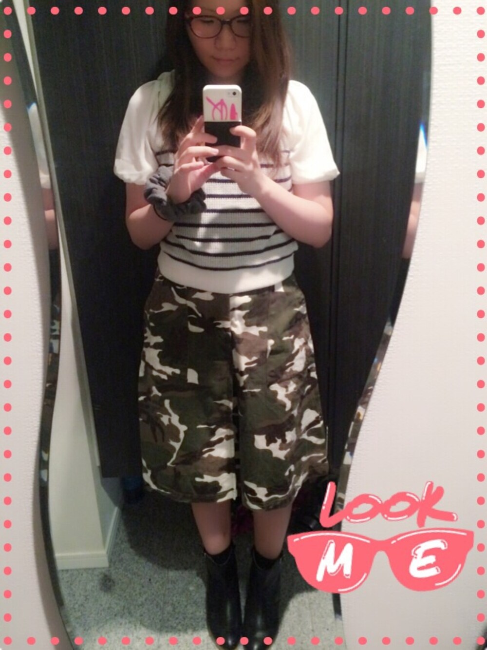 まきchamのスカート「迷彩柄トラペーズミディ丈スカート(綿ツイル)」を使ったコーディネート