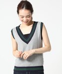 まきchamのトップス「ラインVネックノースリーブ」を使ったコーディネート