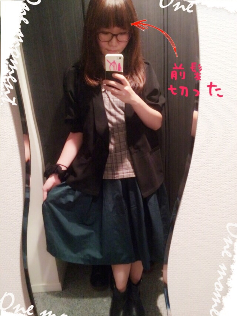 半年以上髪屋行ってなかった 恐ろしい…щ(((´༎ຶД༎ຶ`щ))) 眉上ラウンドぱっつんにしたかったけど 髪質の問題でがっつり切れず 無念(⁎⁍̴̆Ɛ⁍̴̆⁎) 肌寒いと予想して 薄手の黒ジャケをきましたよ しかし暑さ対策も万全で 中は半袖です、しっかりとw 結果は 暑かったです…(˃̶᷄ ω ˂̶᷅ ) このスカートは 一目惚れしただけあって ほんっとシルエット好き♡ しかし残念なことに 歩いてると裏地が股の間に 挟まってきてほんっっっと ウザくさい( ー̀εー́ ) デブだからなんだけど…ね わかってるけど…ね(。º̩̩́⌓º̩̩̀)