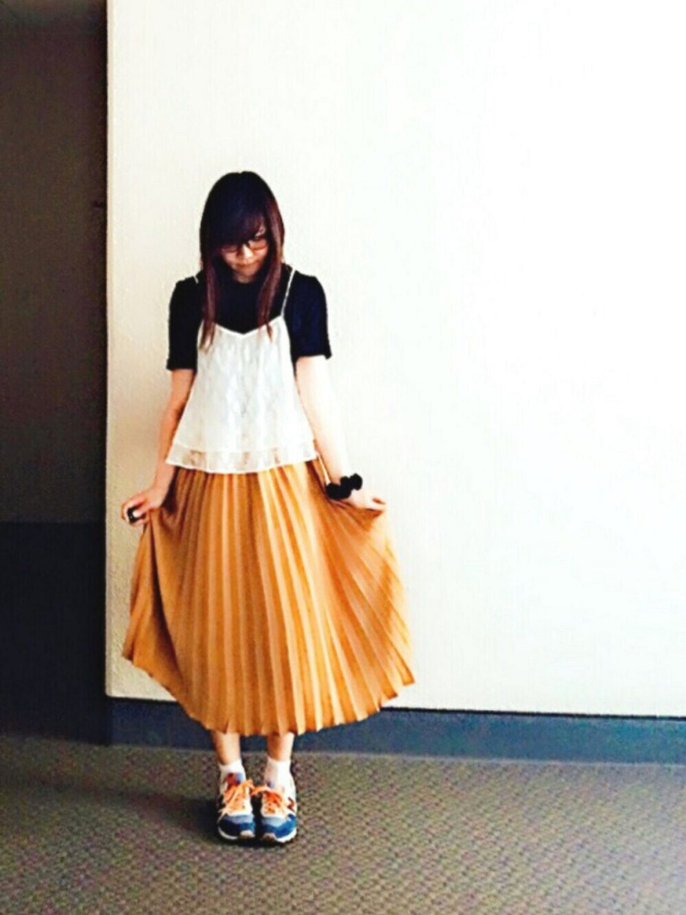 もう5時なのに明るいです そして今日も暑い… 風が強かったので スカート軽くてやばかったw スニーカーの紐に合わせて オレンジのスカートをチョイス そして最近マストのキャミコーデ ブーデーにはもってこいですよ 唯一難点は 余計広がってデブに見えること ダメじゃんw